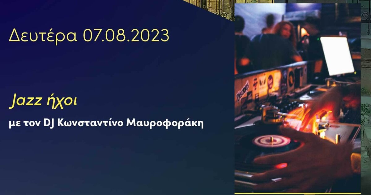 Με τη δύση του ήλιου ο DJ Κωνσταντίνος Μαυροφοράκης θα μας ταξιδέψει σε ήχους jazz, soul, bossa nova, αλλά και σε μουσικές του κόσμου (world music) στον δροσερό Κήπο του Ιστορικού Μουσείου.