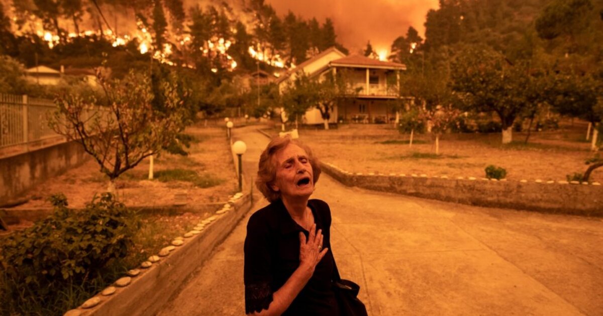 “H φωτογραφία της χρονιάς – τονίζει το δελτίο Τύπου – προέρχεται από την Εύβοια, το δεύτερο μεγαλύτερο νησί της Ελλάδας. Το πλάνο αποτυπώνει την απόγνωση της Κριτσιώπης Παναγιώτα, μιας 81χρονης γυναίκας, καθώς οι φλόγες πλησιάζουν στο σπίτι της κατά τη διάρκεια των σφοδρών δασικών πυρκαγιών που έπληξαν τη χώρα το καλοκαίρι του 2021 και προκάλεσαν εκτεταμένες περιβαλλοντικές ζημιές”.