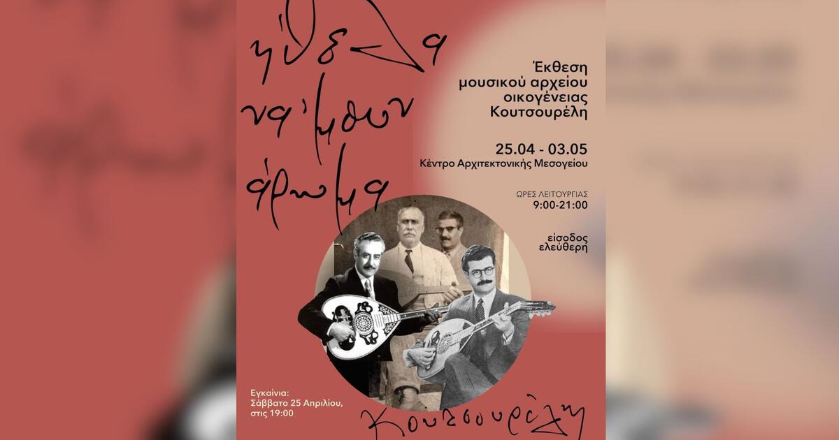 Από το Σάββατο 25 Απριλίου έως την Κυριακή 3 Μαΐου 2026, το Κέντρο Αρχιτεκτονικής Μεσογείου φιλοξενεί την έκθεση «Ήθελα να ’μουν άρωμα…»: Ξεκλειδώνοντας τα μυστικά του μουσικού αρχείου της οικογένειας Κουτσουρέλη.