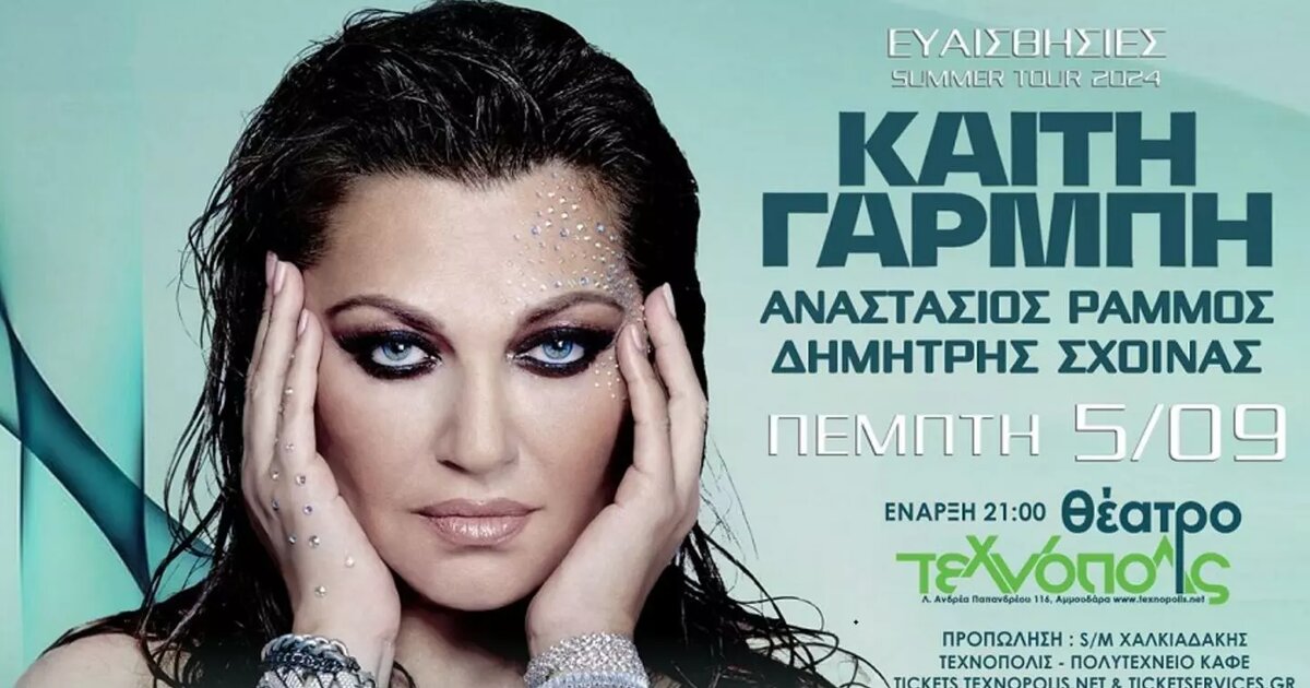 Η «ντίβα της καρδιάς μας», η κορυφαία, σύγχρονη λαϊκή τραγουδίστρια, Καίτη Γαρμπή με το μοναδικό της ηχόχρωμα, τις αισθαντικές με πάθος ερμηνείες που αγγίζουν την ψυχή του κοινού, και τη σαγηνευτική ενέργεια της πάνω στη σκηνή, μετά τις sold out εμφανίσεις στην Αυστραλία και την καλοκαιρινή Αθήνα ,ετοιμάζει εκρηκτικές καλοκαιρινές συναυλίες γεμάτες....ΕΥΑΙΣΘΗΣΙΕΣ!