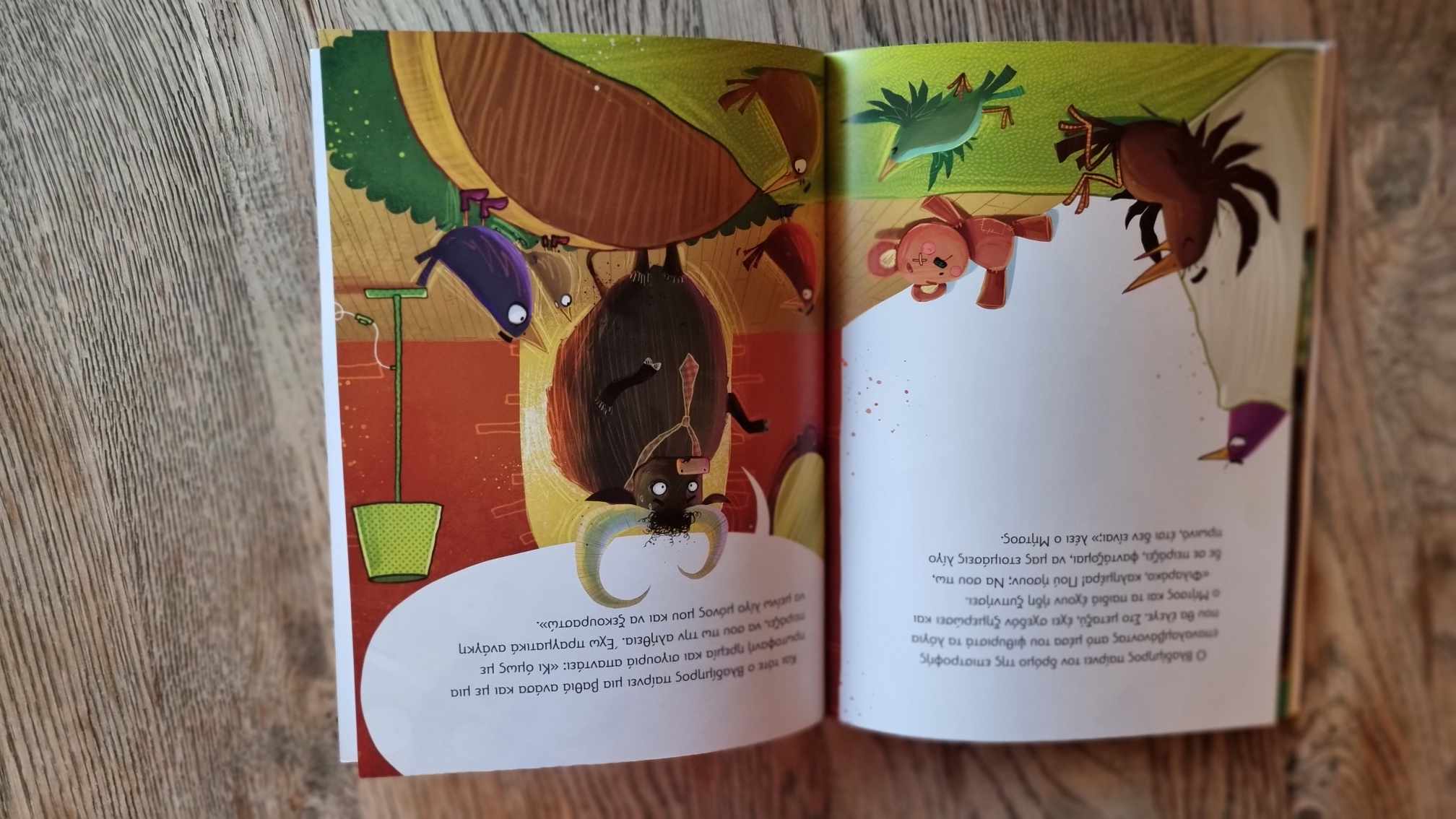 Η εικονογράφηση του Γιάννη Σκουλούδη αντιπροσωπευτικότατη, ζωντανή με υπέροχα σκίτσα και χρώματα. Θυμίζουν τα καρτούν στις παιδικές κινηματογραφικές ταινίες και θα ενθουσιάσουν – μαγνητίσουν τα παιδιά.