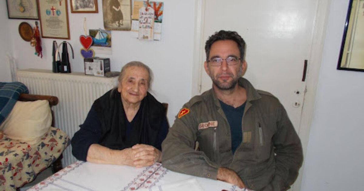Σ.σ.: Στην κεντρική φωτογραφία ο ιστορικός Ιάσονας Χανδρινός με την Ελευθερία Αλεβυζάκη-Βαβουράκη στο σπίτι της στην Κοξαρέ