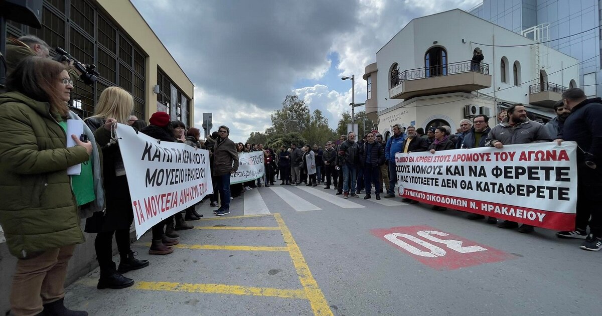 Στους δρόμους οι εργαζόμενοι στο Αρχαιολογικό Μουσείο Ηρακλείου - Στο πλευρό τους εκπρόσωποι των κομμάτων της αντιπολίτευσης, συνδικάτα, σύλλογοι, εκπρόσωποι φορέων και απλοί πολίτες