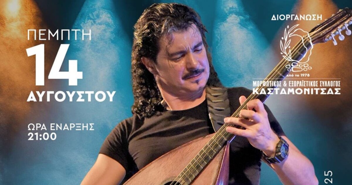 Ο μορφωτικός και εξωραϊστικός σύλλογος Κασταμονίτσας με την υποστήριξη της Περιφέρειας Κρήτης, οργανώνει μια ξεχωριστή Κρητική βραδιά με τον σπουδαίο καλλιτέχνη Μιχάλη Τζουγανάκη. Η μουσική εκδήλωση θα πραγματοποιηθεί την Πέμπτη 14 Αυγούστου, με ώρα έναρξης στις 9 το βράδυ, στον προαύλιο χώρο του Δημοτικού Σχολείου Κασταμονίτσας, υπό το φως του Αυγουστιάτικου φεγγαριού και τη μαγεία της κρητικής παράδοσης.