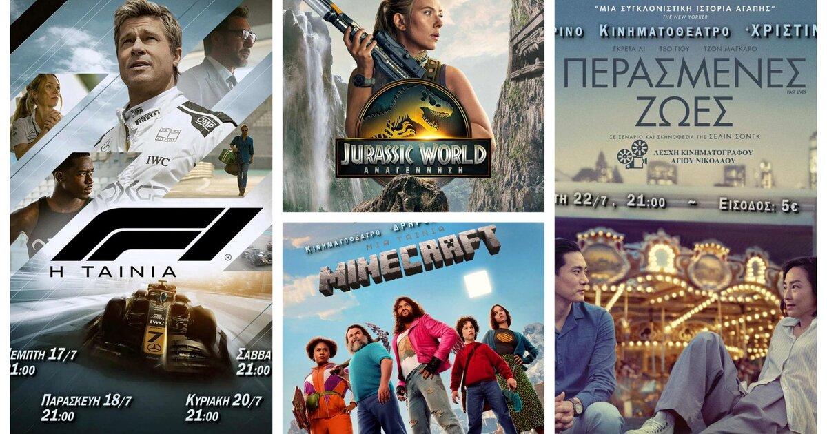 Με τις ταινίες «Μια Ταινία Minecraft», «F1: Η Ταινία», «Jurassic World: Αναγέννηση» και «Περασμένες Ζωές» συνεχίζονται οι κινηματογραφικές προβολές στα κινηματοθέατρα «Δρήρος» στην Νεάπολη και «Χριστίνα» στον Άγιο Νικόλαο.