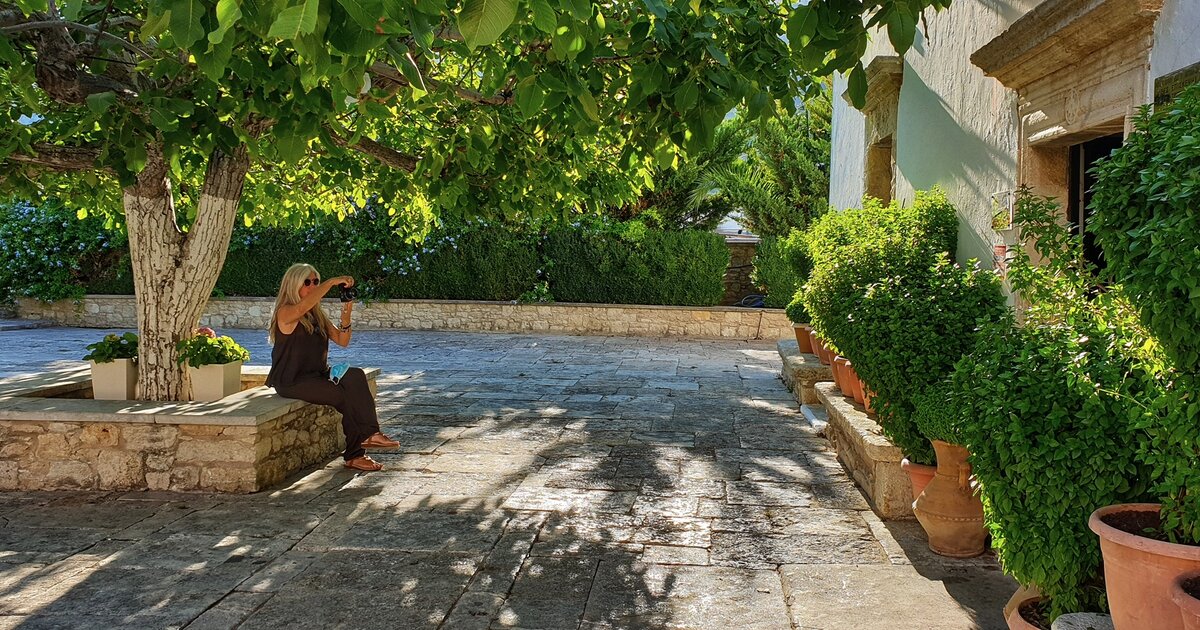 Η μαγική πλακόστρωτη αυλή ήταν κατάφορτη με γλάστρες βασιλικού, έθιμο που χάνεται στα βάθη των χρόνων. Φέτος πιο πολύ από κάθε άλλη χρονιά. Λένε πως από παλιά οι νοικοκυρές του χωριού τους φέρνουν προσφορά στη Χάρη Της, όλη τη διάρκεια του Δεκαπενταύγουστου, για να την συντροφεύουν στο μεγάλο Της ταξίδι. Όσο πιο περιποιημένη είναι η γλάστρα, όσο πιο πολύ φουντώνει ο βασιλικός, τόσο φαίνεται η νοικοκυροσύνη της γυναίκας που την έταξε…