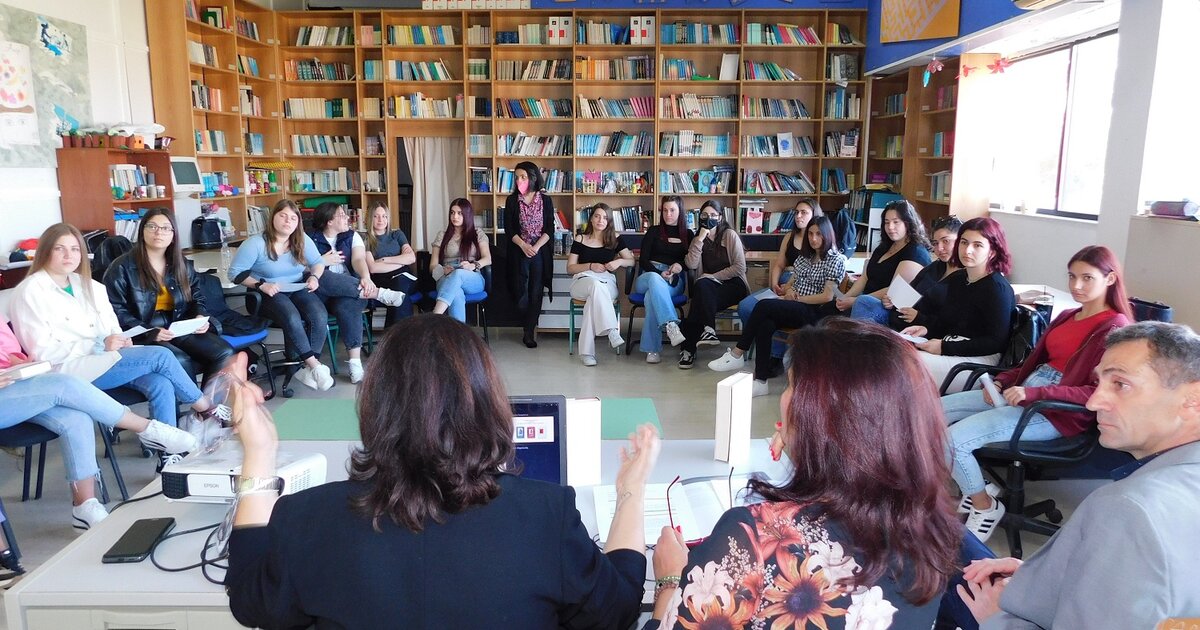 Την Παρασκευή 13 Μαΐου 2022 οι σπουδάστριες του Τμήματος Βοηθών Βρεφονηπιοκόμων Β' του 1ου Δημόσιου ΙΕΚ Ηρακλείου συμμετείχαν σε Λέσχη Ανάγνωσης με ζωντανή παρουσία η οποία πραγματοποιήθηκε στον χώρο της βιβλιοθήκης του σχολείου. Το έργο που μελετήθηκε, παρουσιάστηκε και συζητήθηκε ήταν το παιδικό-νεανικό μυθιστόρημα του Νίκου Καζαντζάκη «Στα Παλάτια της Κνωσού».