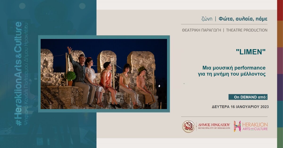 Η μουσική performance «Limenhttps://www.cretalive.gr/tags/limen» που παρουσιάστηκε για πρώτη φόρα στις 7 και 8 Αυγούστου 2022 στο Θαλάσσιο Φρούριο Ενετικού Λιμένος Ηρακλείου (Κούλες), στο πλαίσιο του θεσμού “Όλη η Ελλάδα ένας Πολιτισμός” του Υπουργείου Πολιτισμού και Αθλητισμού με την υποστήριξη του Δήμου Ηρακλείου- Αντιδημαρχίας Πολιτισμού είναι πλέον διαθέσιμη στο ψηφιακό κανάλι πολιτισμού του Δήμου Ηρακλείου Heraklion Arts and Culture, στη ζώνη θέασης «Φώτα, Αυλαία, Πάμε» και στον παρακάτω σύνδεσμο: https://youtu.be/e_A8b11ZYLg