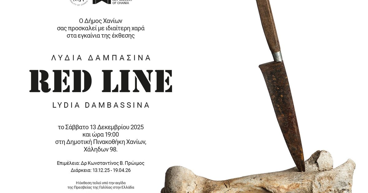 Τα εγκαίνια της νέας έκθεσης της Δημοτικής Πινακοθήκης, με τίτλο: «Λυδία Δαμπασίνα - Red Line» πραγματοποιούνται απόψε στα Χανιά.