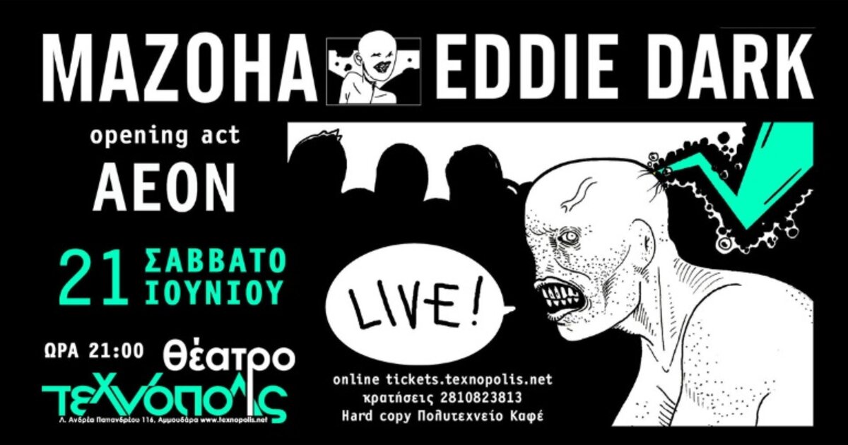 Ο MAZOHA, με τη γνωστή του τρυφερή ωμότητα, και ο EDDIE DARK, με τις μαύρες του μελωδίες και τη φωνή-χειμώνα, σε περιμένουν για μια βραδιά που θα θυμάσαι (ή θα θες να ξεχάσεις) για πάντα.