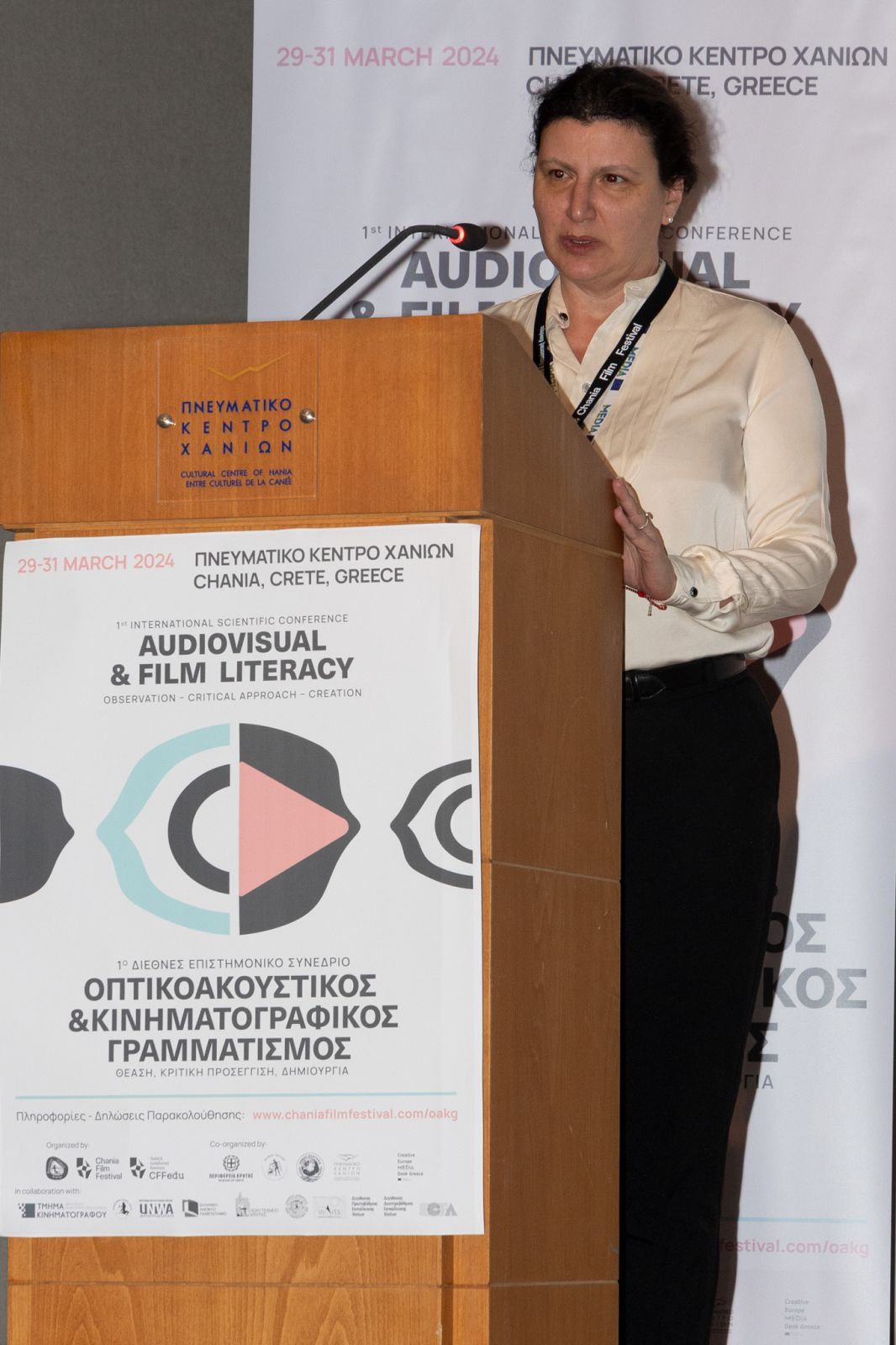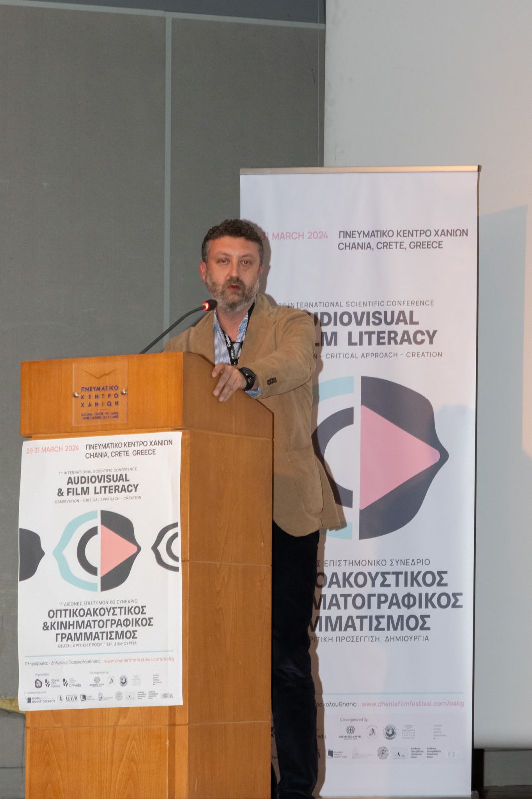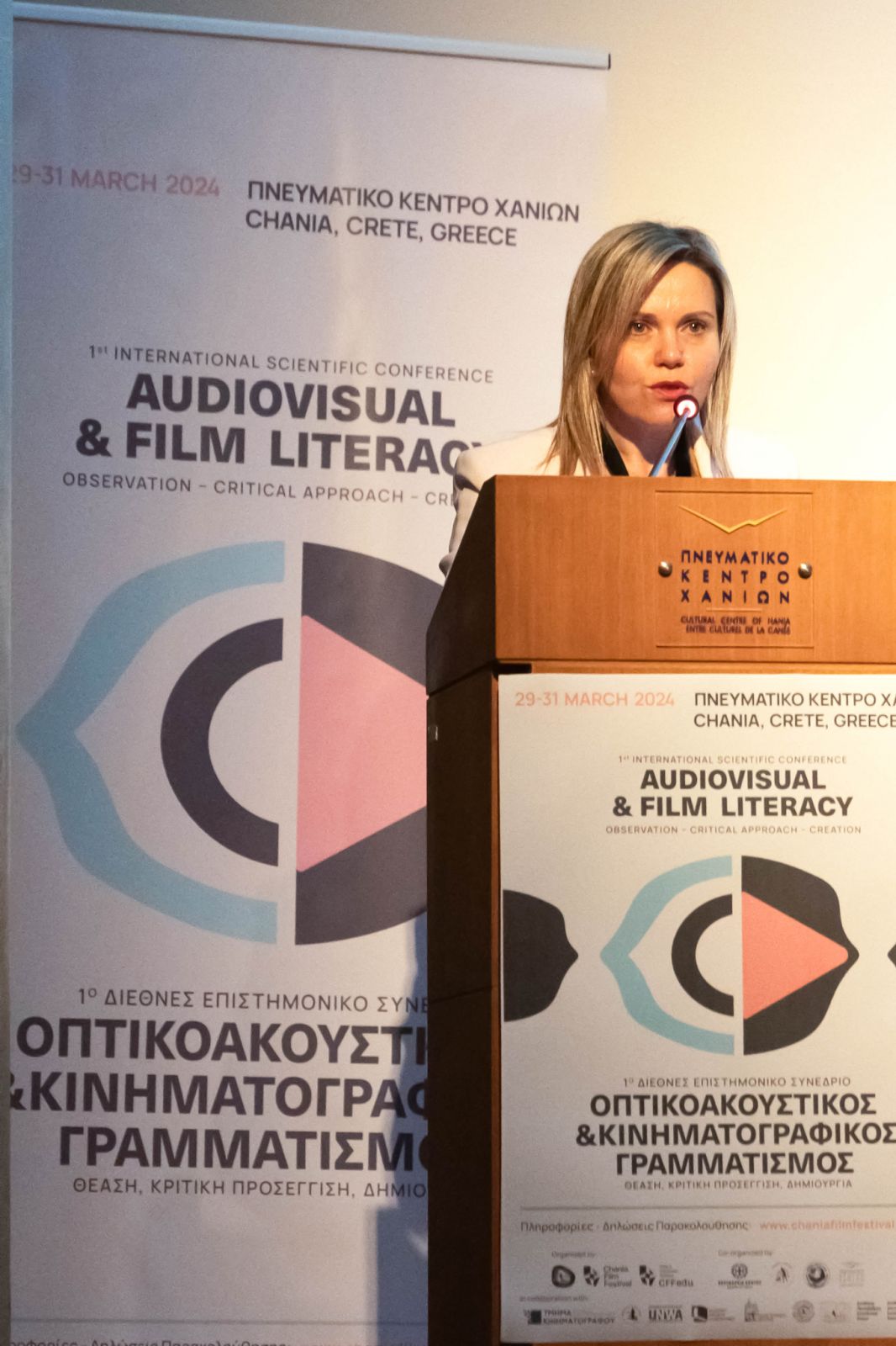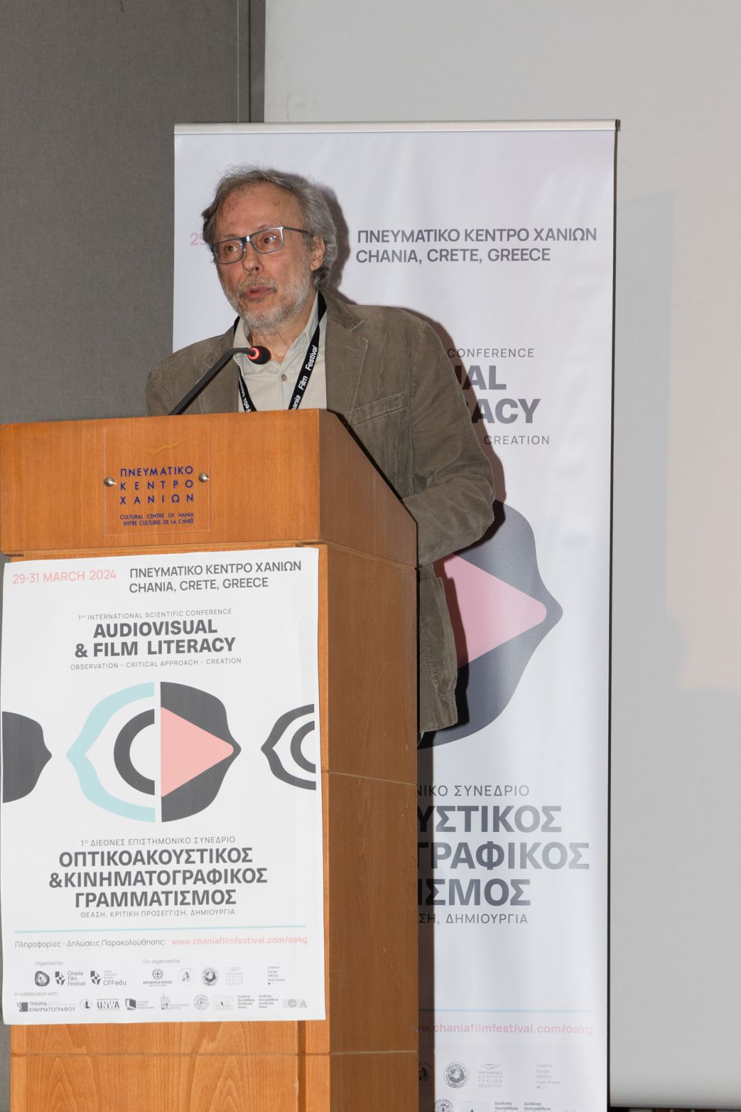 Τη σημασία της οπτικοακουστικής παιδείας για την ανάπτυξη κριτικής σκέψης, κριτικής θέασης και σημαντικών δεξιοτήτων ανέδειξε το 1ο Διεθνές Συνέδριο Οπτικοακουστικού και Κινηματογραφικού Γραμματισμού που πραγματοποιήθηκε από τοις 29 έως τις 31 Μαρτίου 2024 στα Χανιά, με πρωτοβουλία του Φεστιβάλ Κινηματογράφου Χανίων. Στο επίκεντρο των εργασιών του συνεδρίου βρέθηκε η ανάπτυξη και αξιοποίηση των κατάλληλων εργαλείων που θα συμβάλλουν στην αντιμετώπιση των πολύπλευρων προκλήσεων που δημιουργεί η τεχνολογία, τόσο στο σχολείο όσο και σε άλλους τομείς εκπαίδευσης.