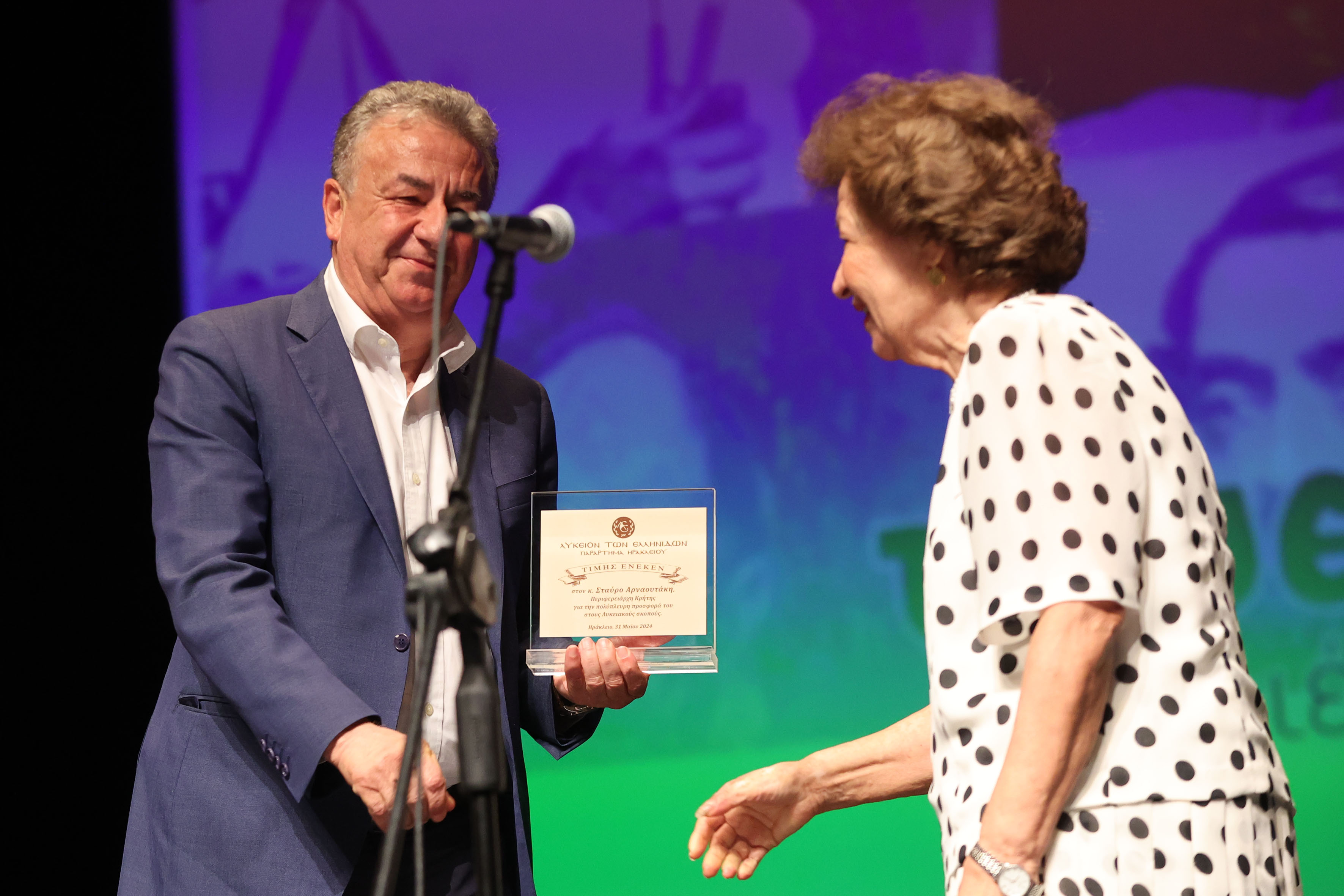 Στην έναρξη της εκδήλωσης με αναμνηστική πλακέτα τιμήθηκε ο Περιφερειάρχης Κρήτης Σταύρος Αρναουτάκης για την διαχρονική στήριξη της Περιφέρειας Κρήτης στο Λύκειο Ελληνίδων.