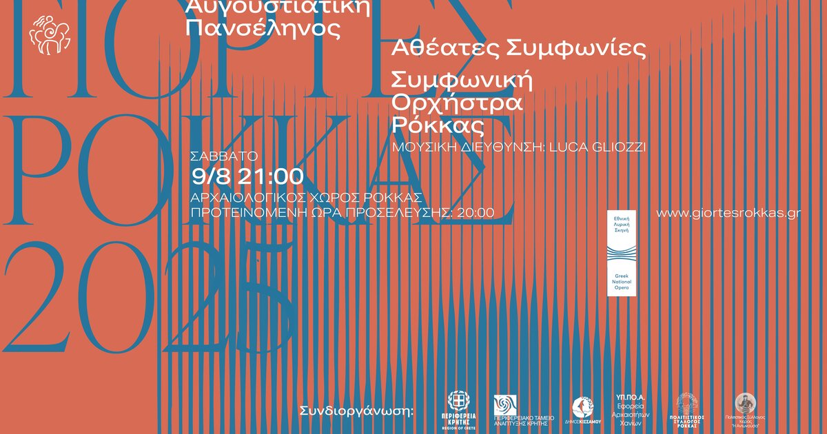 Κάτω από τον έναστρο ουρανό της Κισσάμου και λουσμένοι από το φως της Αυγουστιάτικης Πανσελήνου, δεκάδες μουσικοί και ο μαέστρος Luca Gliozzi θα προσφέρουν ένα μοναδικό συμφωνικό ταξίδι, στον φυσικό «καθρέφτη» του Αρχαιολογικού Χώρου Ρόκκας.