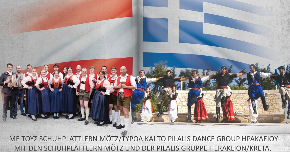 Το συγκρότημα SCHUHPLATTERN MÖTZ, φιλοξενούμενο από την Paralos Lifestyle Beach, συμπράττει με το συγκρότημα του Βασίλη Πιλάλη σε δυο εξαιρετικές παραστάσεις στο Ηράκλειο, δίνοντας για πρώτη φορά την ευκαιρία στο κοινό να θαυμάσει τους περίφημους χορούς από το Τυρόλο της Αυστρίας και τις ομοιότητές τους με τους κρητικούς χορούς.