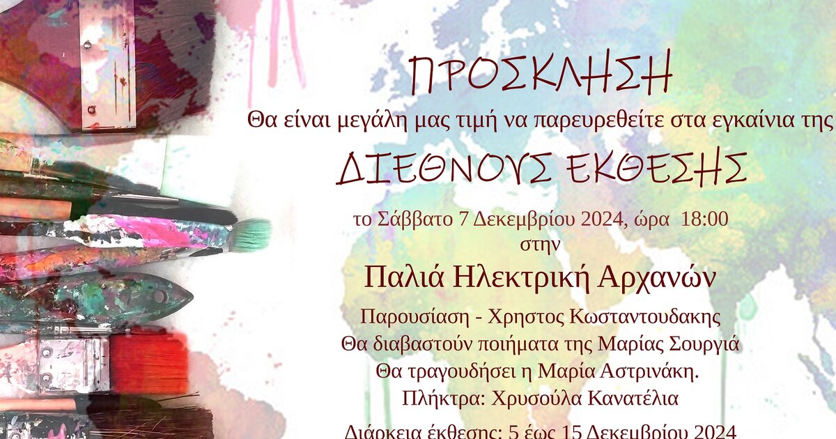 Στο Κέντρο Τέχνης και Πολιτισμού «Παλιά Ηλεκτρική Αρχανών» , και σε συνδιοργάνωση με τον Δήμο Αρχανών Αστερουσίων παρουσιάζεται μια Διεθνής Έκθεση.