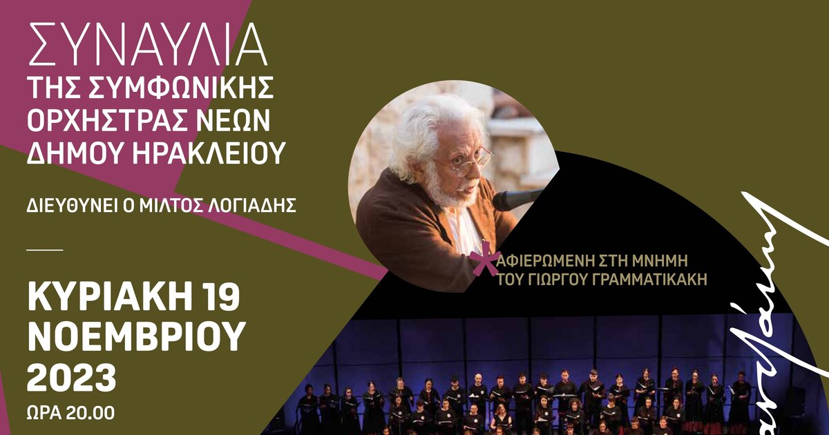 Την Κυριακή 19 Νοεμβρίου 2023, και ώρα 20.00, στο Πολιτιστικό Συνεδριακό Κέντρο Ηρακλείου οι εκδηλώσεις αυτές κορυφώνονται με τη συναυλία της Συμφωνικής Ορχήστρας Νέων Κρήτης (Σ.Ο.Ν.Κ.) του Δήμου Ηρακλείου υπό τη διεύθυνση του Μίλτου Λογιάδη.