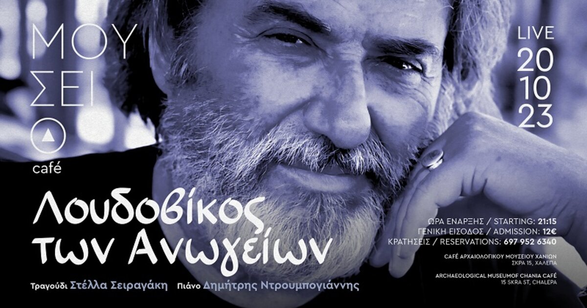 Την Παρασκευή 20 Οκτωβρίου στις 21:15 στο Καφέ Αρχαιολογικού Μουσείου Χανίων θα φιλοξενήσουμε τον Λουδοβίκο των Ανωγείων!