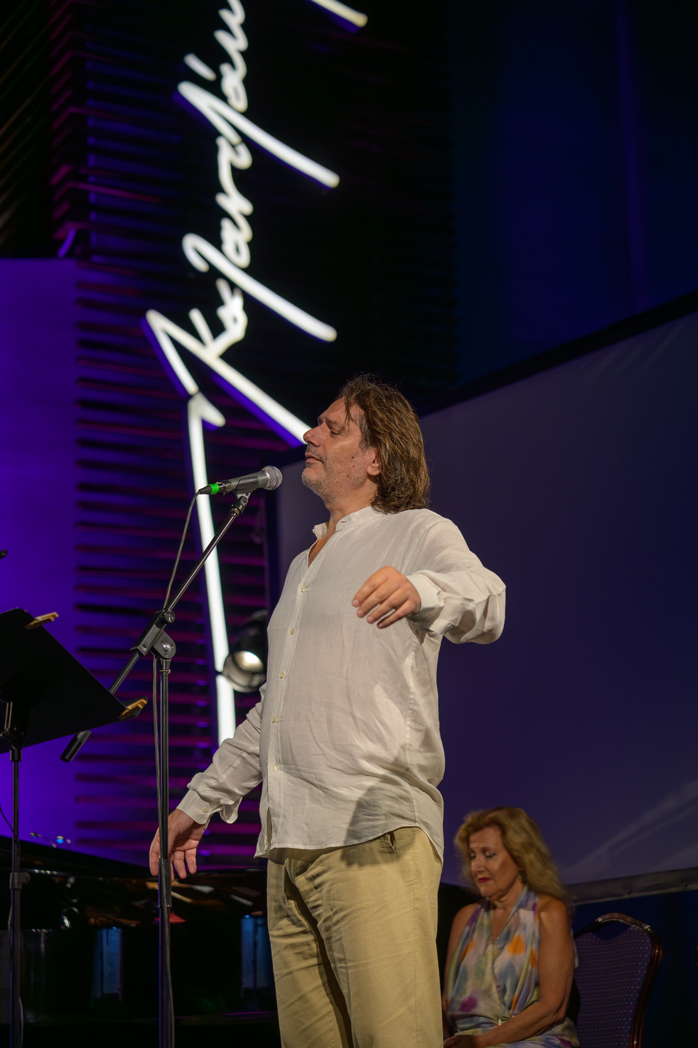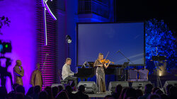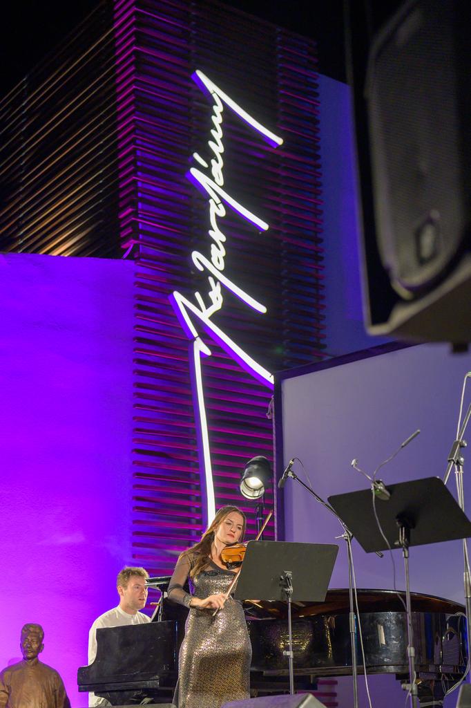 Η Κατερίνα Χατζηνικολάου, εξάρχουσα της κρατικής ορχήστρας Αθηνών, ο Απόστολος Παληός, διακεκριμένος πιανίστας και ο Τάσος Αποστόλου, βαρύτονος της Εθνικής Λυρικής σκηνής, ερμήνευσαν συνθέσεις του σπουδαίου μαέστρου Δημήτρη Μητρόπουλου, ο οποίος το 1925 επισκέφτηκε την Κνωσό συνοδευόμενος από τον Νίκο Καζαντζάκη. Στο δεύτερο μέρος η αισθαντική Έλλη Πασπαλά και ο Τάσος Αποστόλου ερμήνευσαν λυρικά και πασίγνωστα τραγούδια του Μίκη Θεοδωράκη με τη συνοδεία του σπουδαίου κρητικού μαέστρου Μίλτου Λογιάδη στο πιάνο. Η κατάμεστη αυλή του Μουσείου σιγοτραγούδησε συγκινημένη μαζί τους τα θρυλικά τραγούδια του Μίκη Θεοδωράκη.