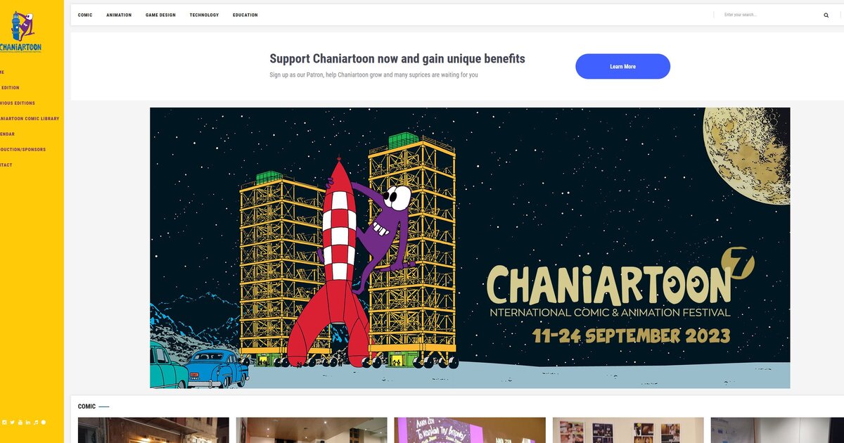 Το Chaniartoon - International Comic & Animation Festival, αποκτάει μια νέα, ανανεωμένη και επανασχεδιασμένη ιστοσελίδα, η οποία βρίσκεται online! Ο σχεδιασμός της ιστοσελίδας είναι τέτοιος ώστε ο επισκέπτης να αποκτάει πλήρη εικόνα για το φεστιβάλ, τις θεματικές και τις δράσεις του.