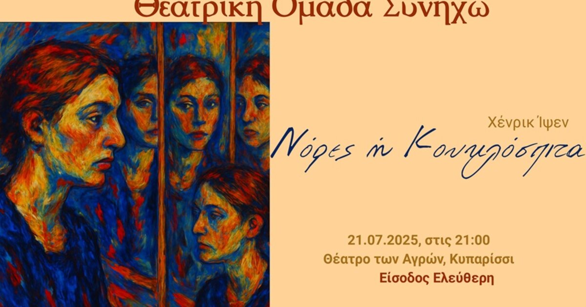 Η Θεατρική Ομάδα ΣΥΝΗΧΩ παρουσιάζει την παράσταση "Νόρες ή Κουκλόσπιτα" στο Θέατρο των Αγρών στο Κυπαρίσσι.
