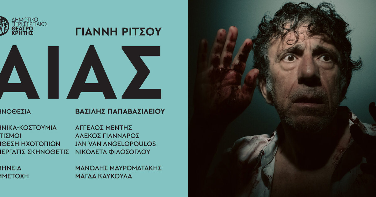 Η παράσταση «Αίας» του Γιάννη Ρίτσου, καλοκαιρινή παραγωγή του ΔΗΠΕΘΕ Κρήτης, για την περίοδο 2022-23, κάνει πρεμιέρα στα Χανιά, στο Αρχαίο Θέατρο της Απτέρας στις 30 Ιουνίου, σε σκηνοθεσία Βασίλη Παπαβασιλείου και με μια εξαιρετική ομάδα ηθοποιών και συντελεστών. Η παράσταση θα περιοδεύσει στη συνέχεια σε όλη την Κρήτη και σε επιλεγμένα Φεστιβάλ στην Αθήνα.