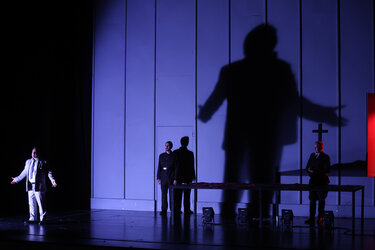 Αξίζουν συγχαρητήρια στον Καλλιτεχνικό Διευθυντή του ΠΣΚΗ Μύρωνα Μιχαηλίδη, τόσο για την διεύθυνση του έργου όσο και για την άψογη παραγωγή, όπως και σε όλους τους συνεργάτες μας στο ΠΣΚΗ που πέτυχαν ένα ακόμη αποτέλεσμα που κάλλιστα μπορεί να σταθεί σε οποιαδήποτε σκηνή στον κόσμο. Και βέβαια, θα ήθελα να τονίσω ότι σε αυτό το περιβάλλον συμμετείχαν και συνέβαλαν στην επιτυχία και δικοί μας καλλιτέχνες, δικά μας τοπικά σχήματα.