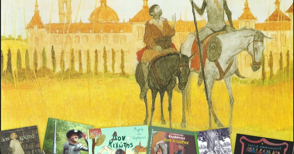 Δον Κιχώτης ή ο ιππότης που βγήκε από τα βιβλία για να αλλάξει τον κόσμο, Αντώνης Παπαθεοδούλου, εικ :Ίρις Σαμαρτζή, εκδ. Παπαδόπουλος : https://www.epbooks.gr/shop/paidika-neanika-biblia/eikonografimena-biblia-gia-paidia/don-kixotis/