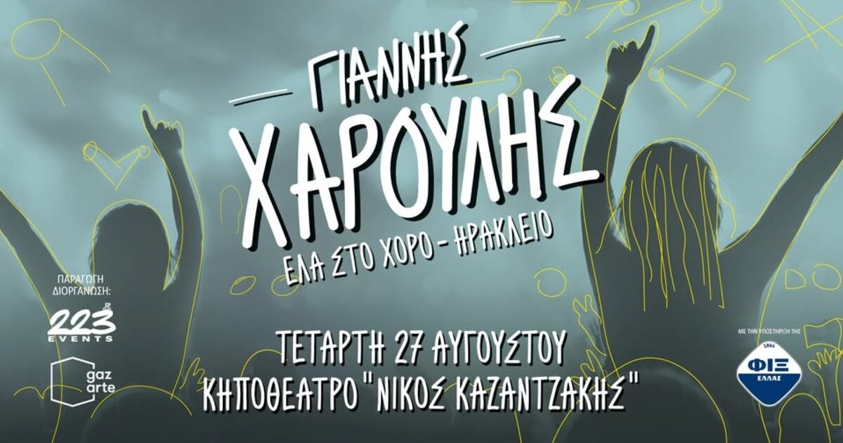 Στο Κηποθέατρο «Νίκος Καζαντζάκης» αύριο θα εμφανιστεί ο Γιάννης Χαρούλης ο οποίος θα μας παρασύρει σε ένα ξέφρενο γλέντι. Ένα γλέντι που μόνο αυτός ξέρει να στήνει τόσο αυθόρμητα και ειλικρινά.