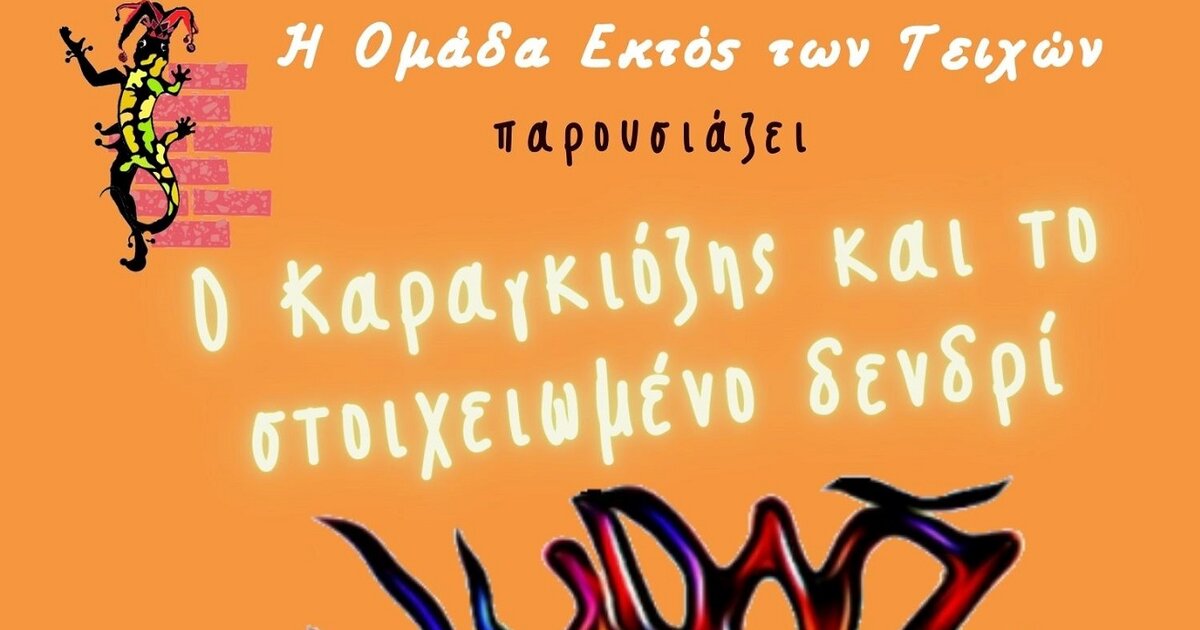 Η ομάδα “Εκτός των τειχών” και ο Χρήστος Συρμακέζης παρουσιάζουν, την Τετάρτη, 21 Αυγούστου, στις 20.30, την κωμωδία του θεάτρου σκιών «ο Καραγκιόζης και το Στοιχειωμένο Δεντρί», μια παράσταση με κωμικό και μεταφυσικό περιεχόμενο. Η είσοδος είναι ελεύθερη.