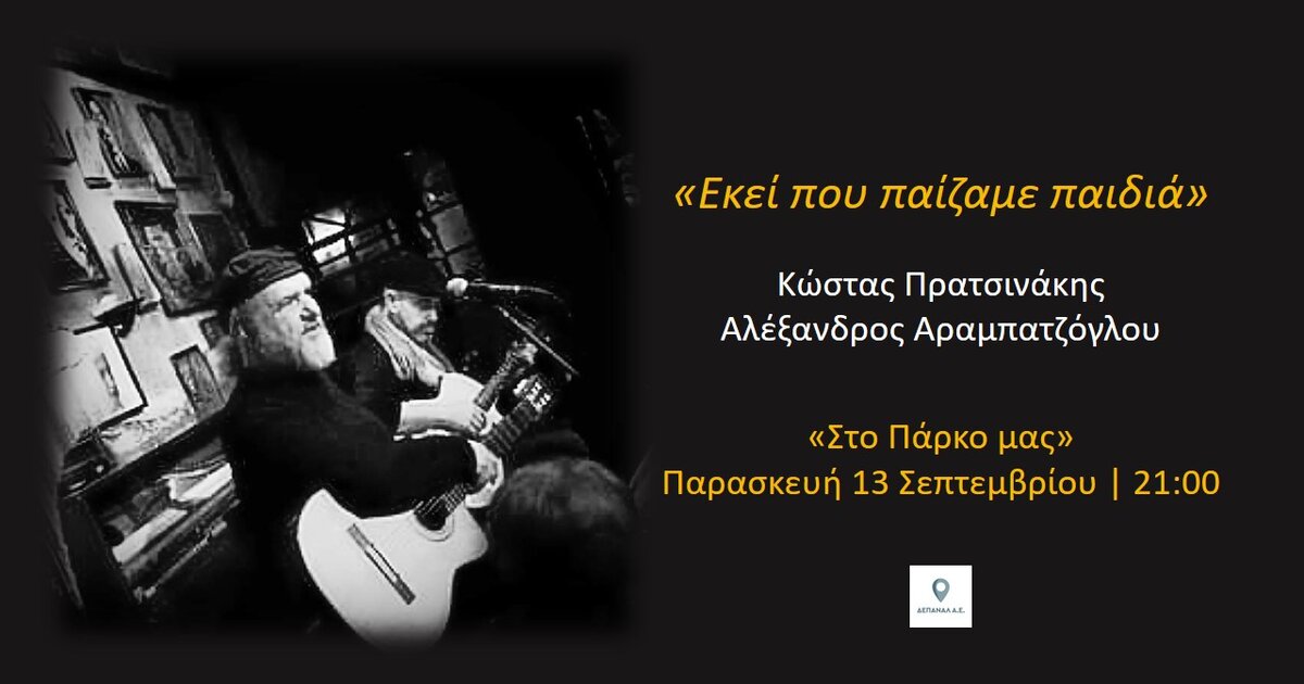 «Εκεί που παίζαμε παιδιά» είναι ο τίτλος μίας μοναδικής μουσικής βραδιάς που διοργανώνει η ΔΕΠΑΝΑΛ Α.Ε. στο αναψυκτήριο «Το Πάρκο μας», στο Πάρκο Γεωργιάδη.