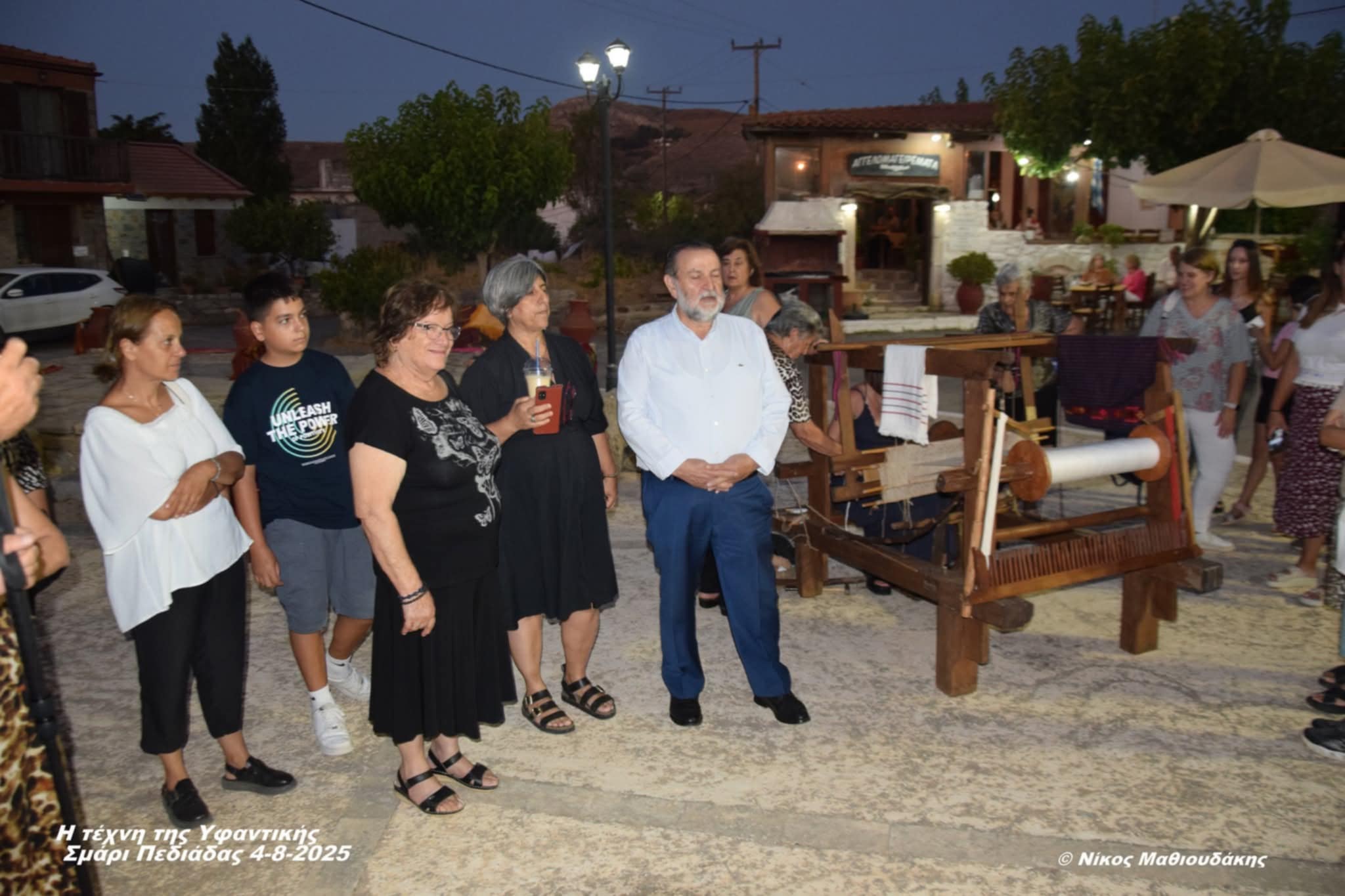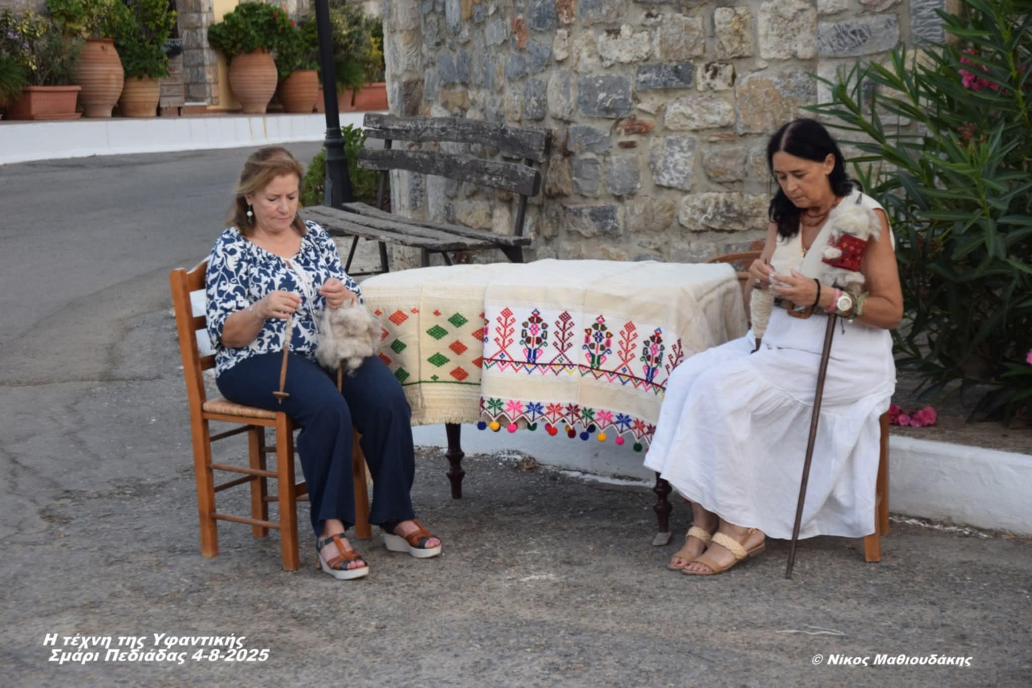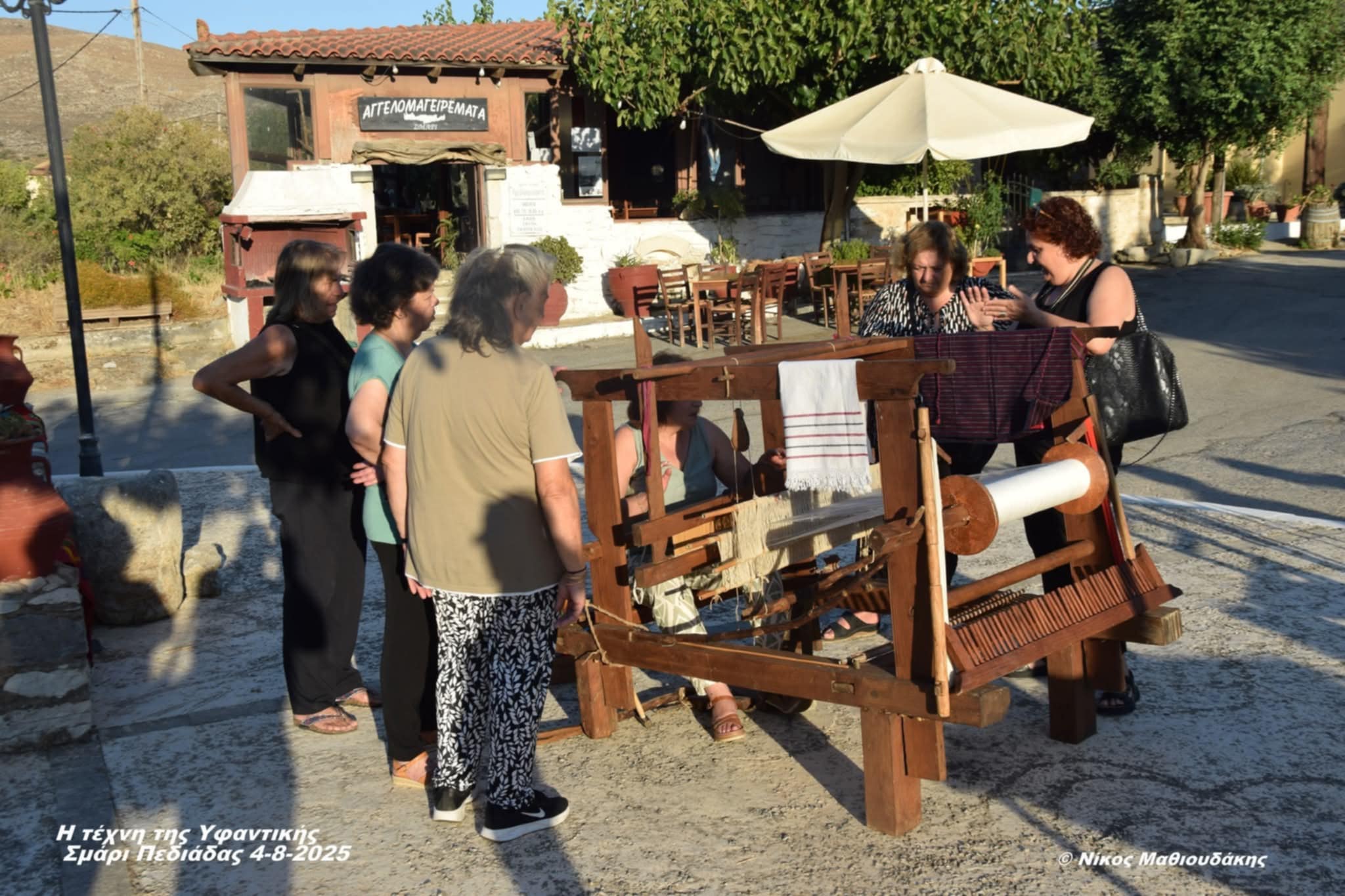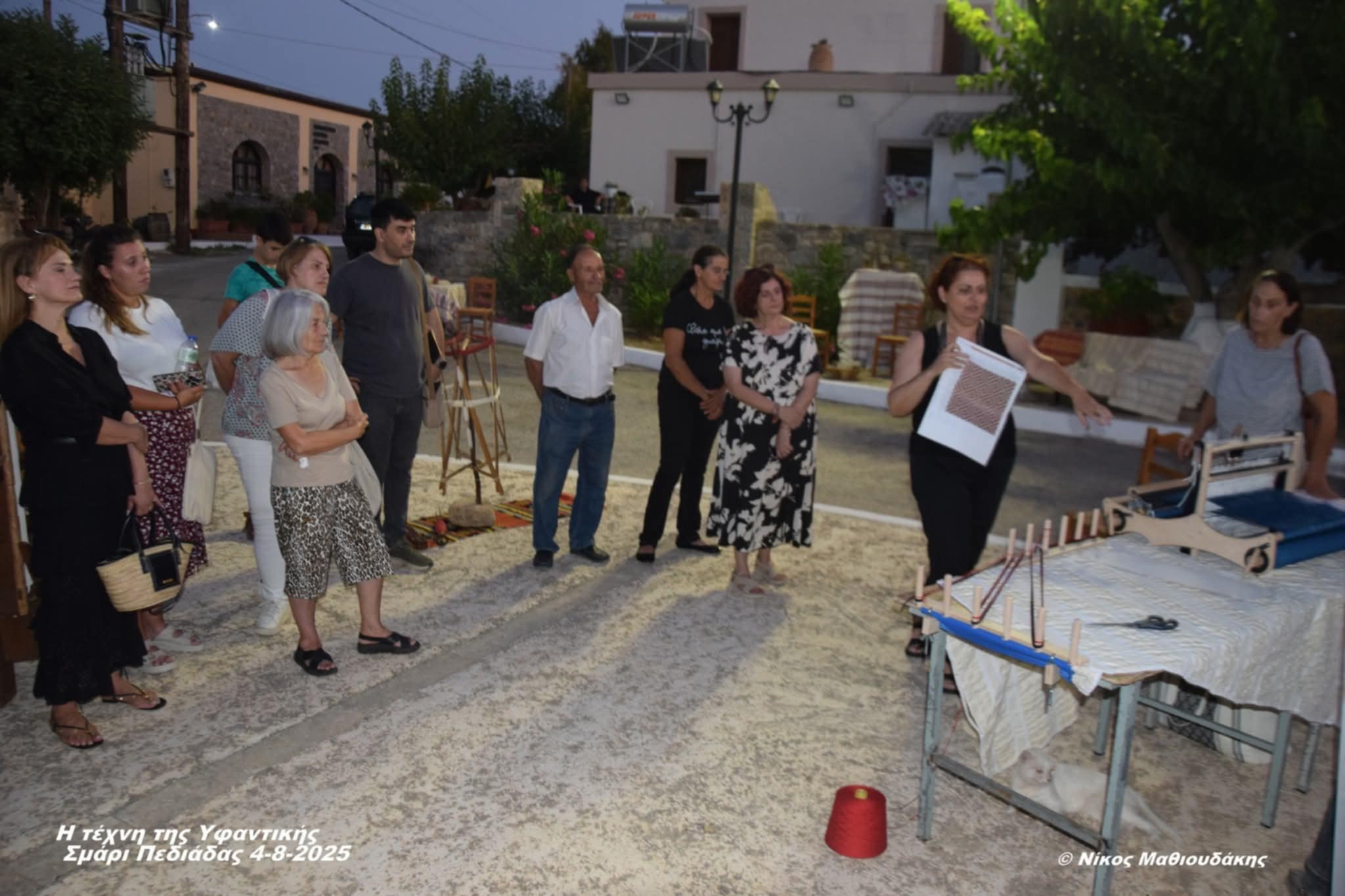 Στη συνέχεια, οι συμμετέχοντες παρακολούθησαν μια εξαιρετική ξενάγηση στη Βυζαντινή εκκλησία του Αφέντη Χριστού από την αρχαιολόγο Ελένη Κανάκη, η οποία μετέφερε το κοινό πίσω στον χρόνο. Ιδιαίτερο ενδιαφέρον όμως, κέντρισε η βιωματική παρουσίαση της υφαντικής τέχνης της Κρήτης από τις γυναίκες του Σμαρίου , ενώ αξίζει να σημειωθεί ότι στη δράση συμμετείχε και η Σχολή Υφαντικής Τέχνης Ανωγείων. Οι συμμετέχοντες είχαν την ευκαιρία να παρακολουθήσουν από κοντά την τεχνική που μεταφέρεται από γενιά σε γενιά, ενώ η ομιλία του φιλολόγου και Δρα Λαογραφίας Ανδρέα Λενακάκη για την υφαντική τέχνη της Κρήτης εμπλούτισε ακόμα περισσότερο τις γνώσεις του κοινού.