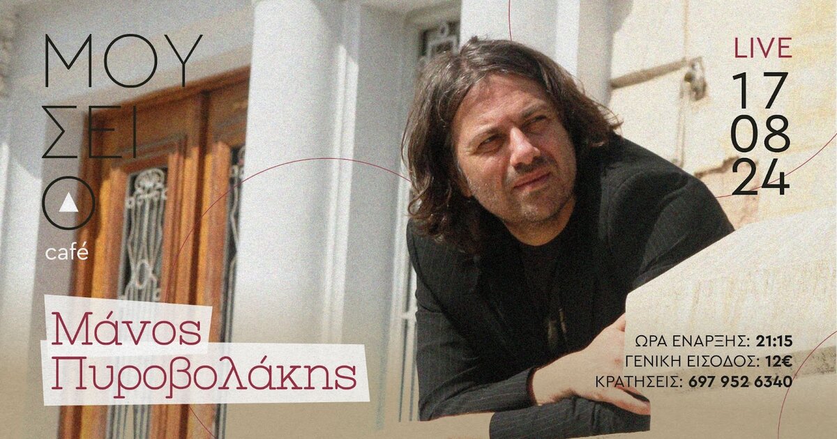 Το Σάββατο 17 Αυγούστου στις 21.15 ο Μάνος Πυροβολάκης και η ορχήστρα του θα βρίσκεται στη βεράντα του καφέ του αρχαιολογικού μουσείου Χανίων.