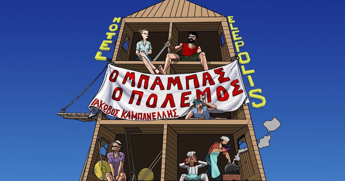 Ο μεγάλος λογοτέχνης, θεατρικός συγγραφέας και ακαδημαϊκός Ιάκωβος Καμπανέλλης έγραψε την κωμωδία «Ο Μπαμπάς ο Πόλεμος» το 1952. Είναι ένα τραγικά επίκαιρο έργο, το οποίο στηρίζεται πάνω σε ιστορικά δεδομένα και συγκεκριμένα στην πολιορκία της Ρόδου από τον Δημήτριο τον πολιορκητή, στα πλαίσια των συγκρούσεων μεταξύ των επιγόνων του Μεγάλου Αλεξάνδρου.