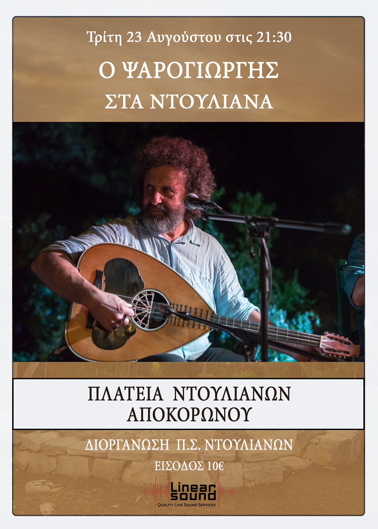 Ο Γιώργος Ξυλούρης με το λαούτο του, σε μια σόλο εμφάνιση στην *πλατεία των Ντουλιανων,* συνδυάζει με τον δικό του λιτό και αρμονικό τρόπο, ήχους από την κρητική μουσική, με νέα στοιχεία που τονώνουν την φαντασία, με σκοπό να δώσει στους ακροατές μια διάσταση της μουσικής του σε ένα ευρύ πεδίο διαχρονικών αρχετύπων και αυθεντικής έκφρασης, που πηγάζει από την βαθιά του σχέση με την κρητική μουσική, και μέσα από μια πλούσια εμπειρία συνεργασιών με μουσικούς από άλλες μουσικές παραδόσεις.
