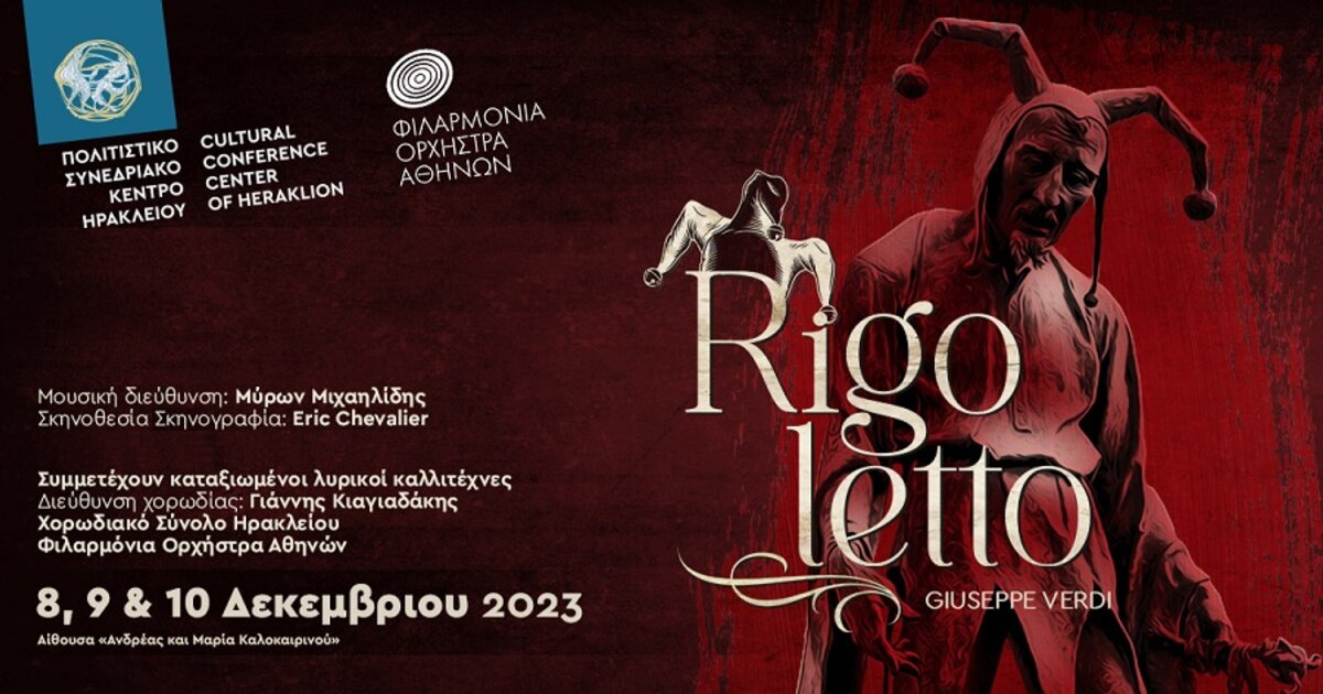 Τη νέα παραγωγή της θρυλικής όπερα Ριγκολέττο του Ιταλού συνθέτη Τζουζέπε Βέρντι θα έχει την ευκαιρία να παρακολουθήσει το κοινό του Ηρακλείου αυτό τον χειμώνα, σε τρεις παραστάσεις σε σκηνοθεσία Eric Chevalier, με τη Φιλαρμόνια Ορχήστρα Αθηνών, το Χορωδιακό Σύνολο Ηρακλείου και τη συμμετοχή καταξιωμένων λυρικών καλλιτεχνών υπό τη μουσική διεύθυνση του κορυφαίου αρχιμουσικού Μύρωνα Μιχαηλίδη.