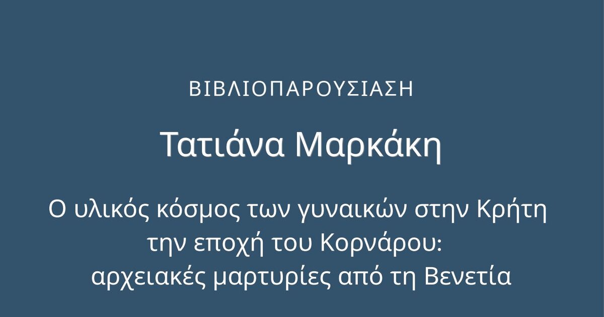 "Ο υλικός κόσμος των γυναικών στην Κρήτη την εποχή του Κορνάρου: αρχειακές μαρτυρίες από τη Βενετία"