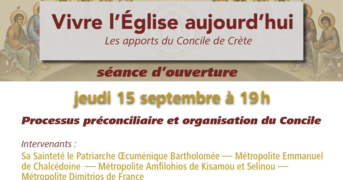 Η Ορθόδοξος Ακαδημία Κρήτης, σε συνεργασία με το νεοσύστατο Βικαριάτο της Ιεράς Μητροπόλεως Γαλλίας, αρχίζει μία σειρά ετήσιων κατηχητικών μαθημάτων για ενηλίκους, με κεντρικό θέμα: «Ζήσε την Εκκλησία σήμερα. Η συνεισφορά της Συνόδου της Κρήτης». Στην πρώτη συνάντηση, η οποία θα αρχίσει την Πέμπτη 15 Σεπτεμβρίου τ.έ., θα συμμετάσχουν με Χαιρετισμό ο Παναγιώτατος Οικουμενικός Πατριάρχης κ.κ. Βαρθολομαίος Α΄, ο Σεβασμιώτατος Μητροπολίτης Γέρων Χαλκηδόνος κ. Εμμανουήλ, ο Σεβασμιώτατος Μητροπολίτης Κισάμου και Σελίνου κ. Αμφιλόχιος και ο Δρ Κωνσταντίνος Ζορμπάς, Γενικός Διευθυντής της ΟΑΚ, ενώ κεντρικός ομιλητής θα είναι ο Σεβασμιώτατος Μητροπολίτης Γέροντας Χαλκηδόνος κ. Εμμανουήλ, ο οποίος θα μιλήσει με θέμα: «Η προετοιμασία της Αγίας και Μεγάλης Συνόδου: Προβλήματα – Προοπτικές».
