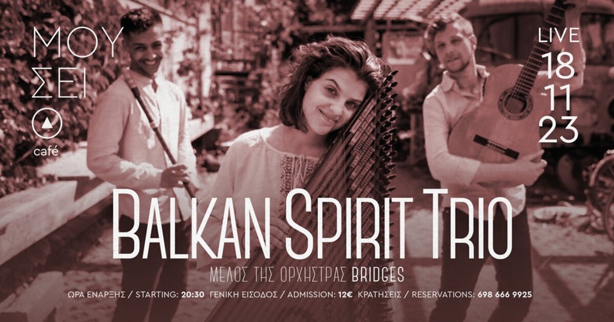 Τρεις μουσικοί από τη Φρανκφούρτη ενώνουν και φέρνουν στη σκηνή την καταγωγή τους και τη βαθιά αγάπη τους για τη μουσική. Ο Vladimir Dindiryakov στο καβάλι, η Ελεάννα Πιτσικάκη από την Κρήτη στο κανονάκι και ο Dennis Merz στην κιθάρα. Αυτοί οι τρεις μουσικοί, μέλοι της ορχήστρας Bridges, δημιούργησαν το συγκρότημα Balkan Spirit Trio. Παίζουν παραδοσιακή, νεοδιασκευασμένη μουσική από ολόκληρη την περιοχή των Βαλκανίων και δικές τους συνθέσεις, οι οποίες είναι επίσης επηρεασμένες από την τζαζ και το φλαμένκο.