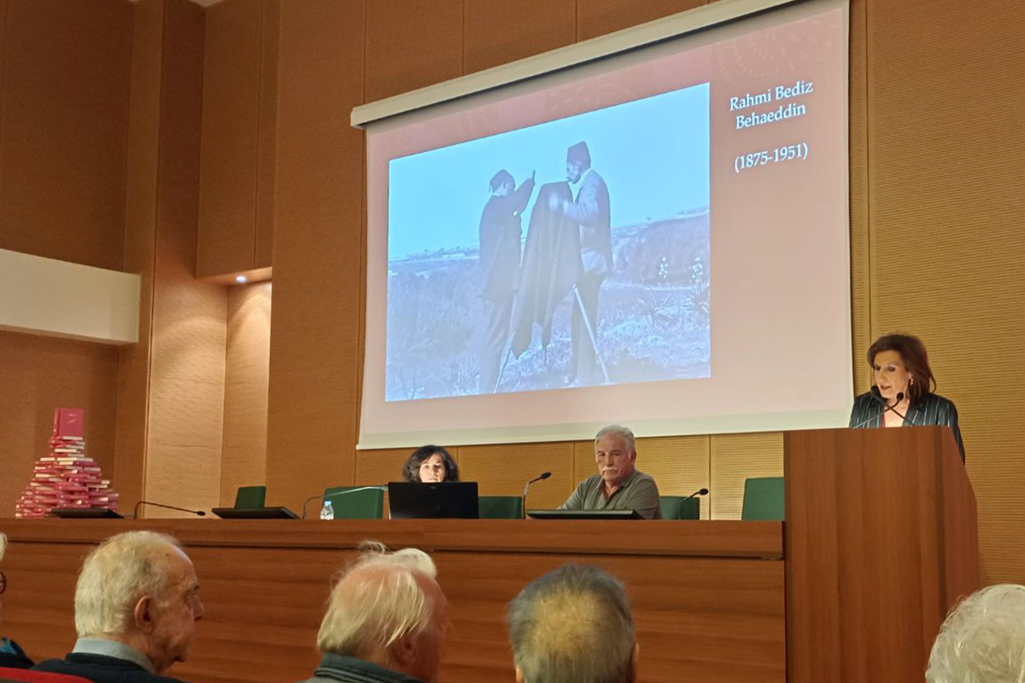 Στην εκδήλωση για τον εμβληματικό φωτογράφο του Μεγάλου Κάστρου των αρχών του 20ου αιώνα, στον οποίο είναι αφιερωμένο το ημερολόγιο της Βικελαίας Δημοτικής Βιβλιοθήκης για το 2025, η φιλόλογος Σοφία Γιανναδάκη και ο Προϊστάμενος της Βικελαίας Δημοτικής Βιβλιοθήκης Δημήτρης Σάββας παρουσίασαν τμήμα του έργου του Μπεχαεντίν μέσα από το πλούσιο και μοναδικό αρχειακό υλικό της Βικελαίας Δημοτικής Βιβλιοθήκης φέρνοντας με αυτό το τον τρόπο στο φως μικρές και μεγάλες, γνωστές και άγνωστες πτυχές της ιστορίας της πόλης. Οι ομιλητές επικεντρώθηκαν στη ζωή του Ραχμιζαδέ Μπεχαεντίν, στην αξία του φωτογραφικού του έργου και στο ιστορικό πλαίσιο της εποχής γύρω στα τέλη του 19ου και αρχές του 20ου αιώνα.
