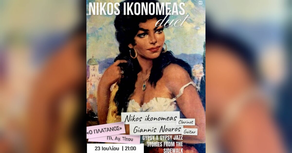 Την Τετάρτη 23 Ιουλίου οι «Gypsy & Gypsy Jazz» με τους Νίκο Οικονομέα στο κλαρίνο και τον Γιάννη Νούρο στην κιθάρα, υπόσχονται μία υπέροχη μουσική βραδιά στο κέντρο της πόλης του Ηρακλείου.