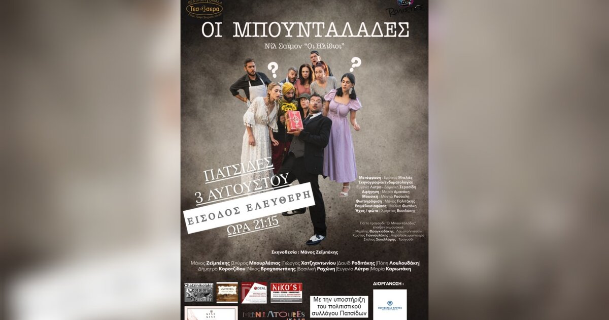 Θεατρική παράσταση το Σάββατο 3 Αυγούστου στις 21.15