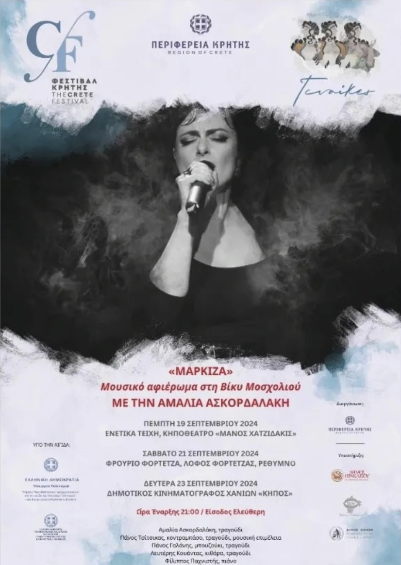 Συναυλία: «ΜΑΡΚΙΖΑ», με την Αμαλία Ασκορδαλάκη, στο Ηράκλειο, στο Ρέθυμνο και στα Χανιά, στο πλαίσιο της Παράλληλης Δράσης του Φεστιβάλ Κρήτης «ΓΥΝΑΙΚΕΣ».