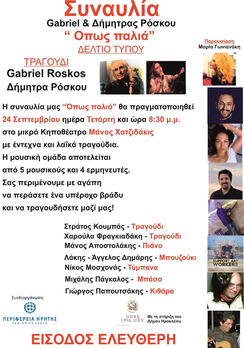 Συναυλία: «Όπως παλιά» με τους Gabriel και Δήμητρα Ρόσκου