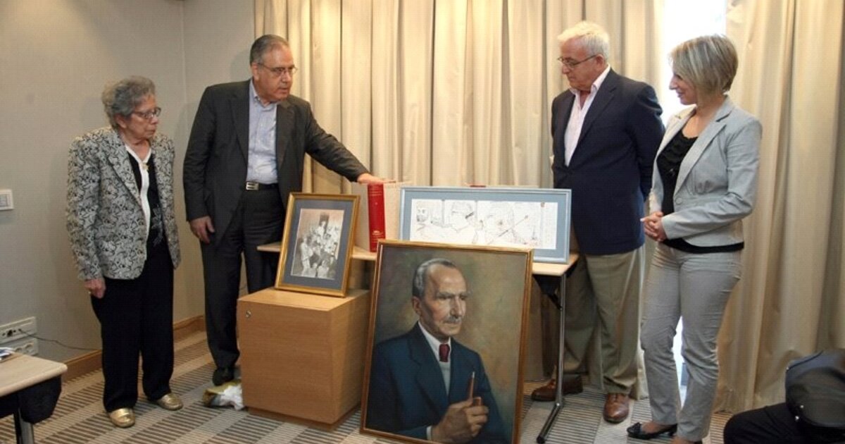 Στη φωτογραφία η Κλεοπάτρα Πρίφτη, πρόεδρος του Ελληνικού Τμήματος της Δ.Ε.Φ.Ν.Κ., ο Γιώργος Στασινάκης (δείχνει τον πίνακα του Φασιανού), ο Κωστής Παπαδάκης, αντιπρόεδρος του Μουσείου Καζαντζάκη, και η Βαρβάρα Τσάκα, διευθύντρια του Μουσείου Καζαντζάκη.