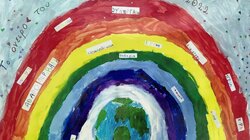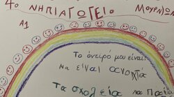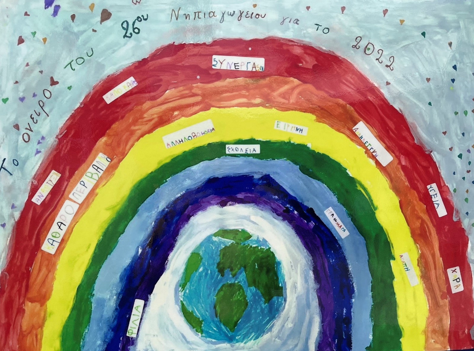 Ζωγραφιές με παιδικά όνειρα, που σχηματίζουν ένα τεράστιο ουράνιο τόξο, όπως αυτό, που βγαίνει μετά από κάθε καταιγίδα