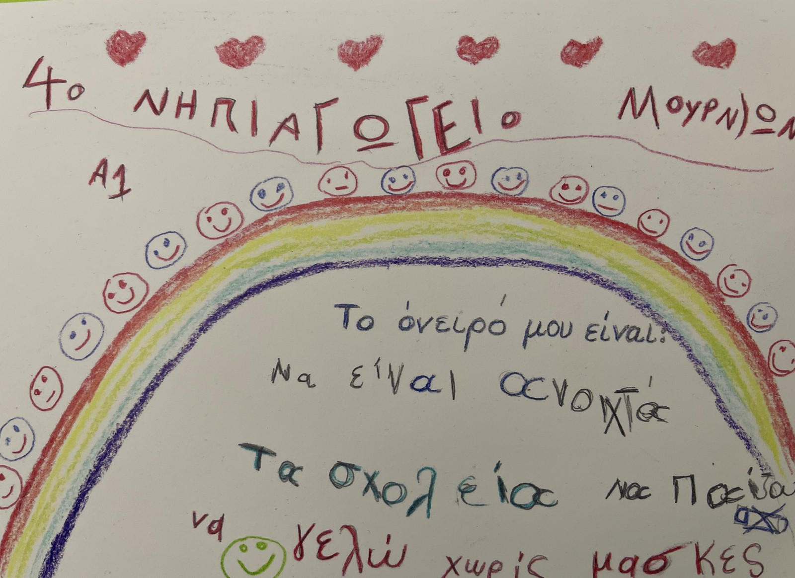 Ζωγραφιές με παιδικά όνειρα, που σχηματίζουν ένα τεράστιο ουράνιο τόξο, όπως αυτό, που βγαίνει μετά από κάθε καταιγίδα. Σε μια εποχή, που πολλά γύρω μας μοιάζουν γκρίζα, μπορούμε να κάνουμε ασπίδα τα όνειρά μας. Χρωματιστά όνειρα, μεγάλα όνειρα, φανταστικά όνειρα!