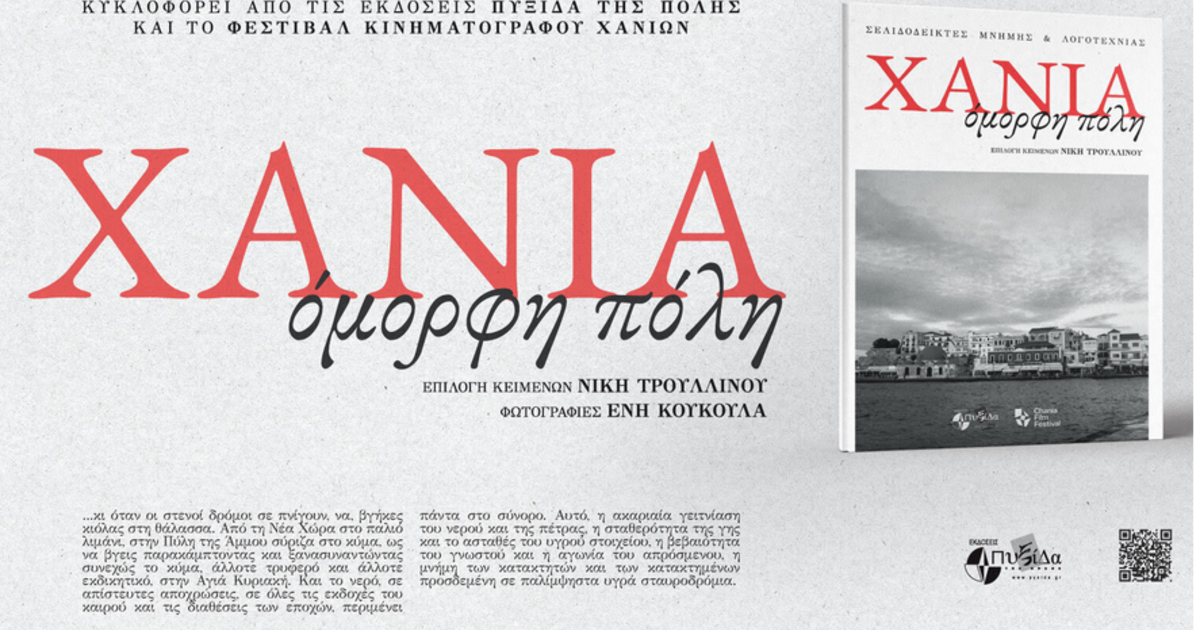 Το Chania Film Festival παρουσιάζει το βιβλίο «Χανιά, όμορφη πόλη. Σελιδοδείκτες μνήμης και λογοτεχνίας» (Επιλογή κειμένων: Νίκη Τρουλλινού, Φωτογραφίες: Ένη Κούκουλα).