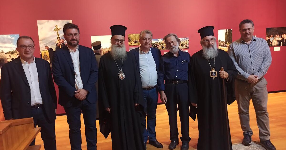 Από την τελετή των εγκαινίων. Ο κ. Ψιλάκης ξεναγεί στην έκθεση τον Αρχιεπίσκοπο Κρήτης κ.κ. Ευγένιο, τον Μητροπολίτη Γορτύνης και Αρκαδίας κ.κ. Μακάριο, τον Περιφερειάρχη Κρήτης κ. Σταύρο Αρναουτάκη, τον Πρόεδρο του Περιφ. Συμβουλίου κ. Ζάχαρη, τον Αντιπεριφερειάρχη κ. Πιτσούλη κ.α..