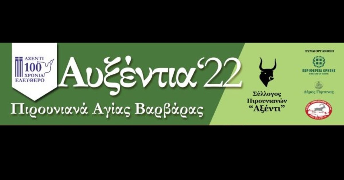 Ο πολιτιστικός σύλλογος Πιρουνιανών «Αξέντι» και η Περιφέρεια Κρήτης συνδιοργανώνουν εκδηλώσεις με τίτλο «Αυξέντια 2022» την Κυριακή 31 Ιουλίου, Κυριακή 7 Αυγούστου και Κυριακή 14 Αυγούστου.