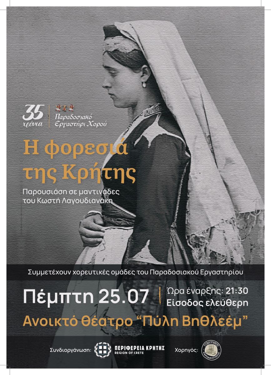 Ο Σύλλογος διάδοσης ελληνικών παραδοσιακών χορών και μουσικής «Παραδοσιακό Εργαστήρι Χορού» και η Περιφέρεια Κρήτης συνδιοργανώνουν, με την υποστήριξη του Δήμου Ηρακλείου, δύο πολιτιστικές παραστάσεις στο ανοικτό θέατρο «πύλη Βηθλεέμ».